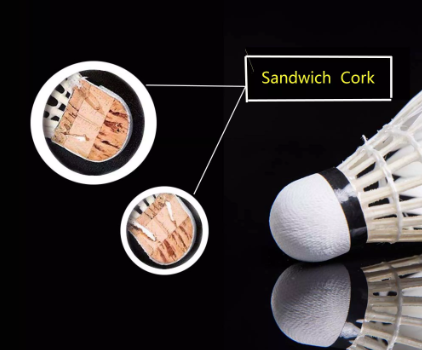 сэндвич (3 слоя - пробка-полиуретан-пробка) у воланов среднего и чуть выше среднего уровня (Li-ning G600, Ling-mei 60 80, Kawasaki Team 2, Chao Pai Special)